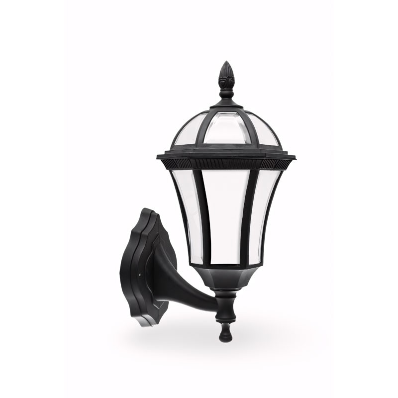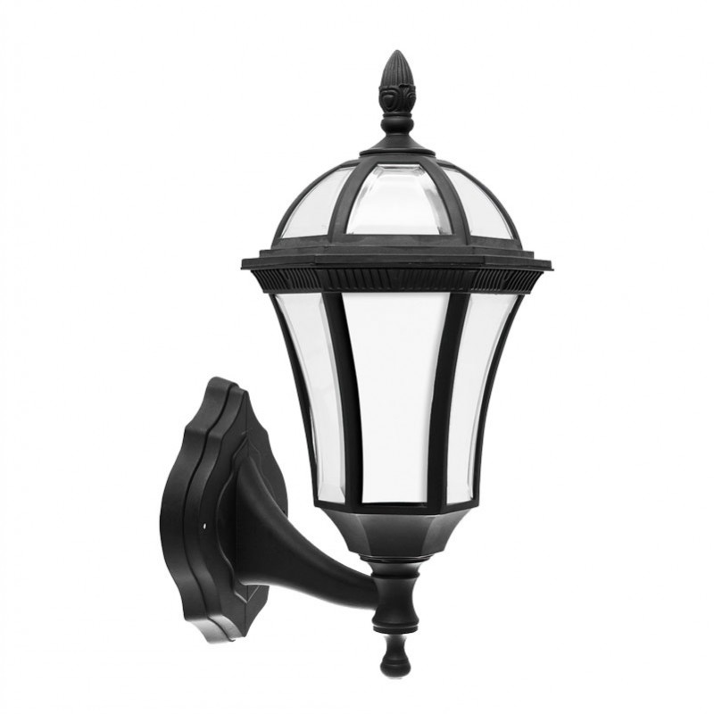 Fabricado en policarbonato, este aplique está preparado para soportar las condiciones del exterior sin renunciar a la estética. Su brazo curvo y base decorativa aportan un toque clásico que encaja perfectamente tanto en viviendas particulares como en proyectos de hostelería o espacios comerciales.