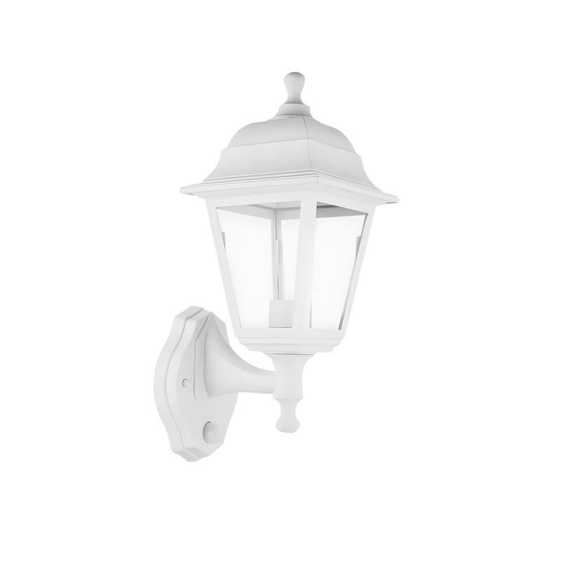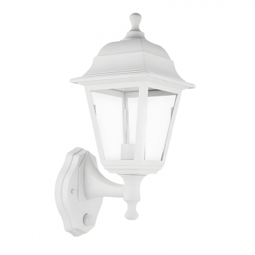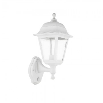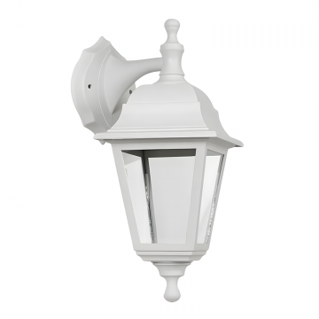 Aplique de exterior en color blanco con diseño clásico, fabricado en policarbonato resistente. Con IP44, ideal para iluminar entradas, patios o terrazas.