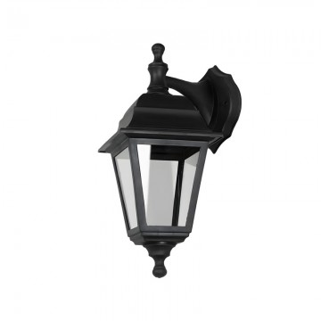 Su estructura en color negro se adapta con facilidad a diferentes estilos arquitectónicos, aportando un toque elegante sin perder robustez. Cuenta con un portalámpara E27 (bombilla no incluida), compatible con bombillas LED de bajo consumo.