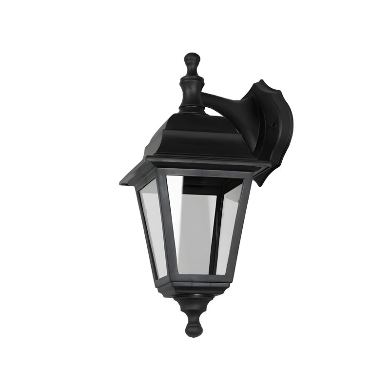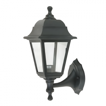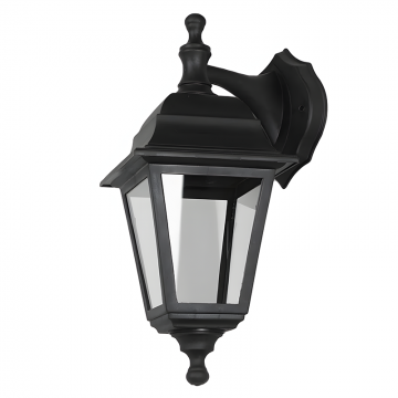 Sobremuro exterior negro de estilo clásico, fabricado en policarbonato resistente. Ideal para iluminar muros y entradas. Casquillo E27. Apto para exterior (IP44).
