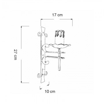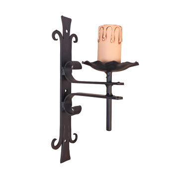 Aplique Pared Forja 60201 de una luz, fabricado en hierro forjado artesanal, con un acabado de color negro. Su diseño Rustico es perfecto para iluminar casas rulares, cortijos, restaurantes, etc... Incorpora portalámparas E27 en forma de velas dando un toque clásico y rustico.