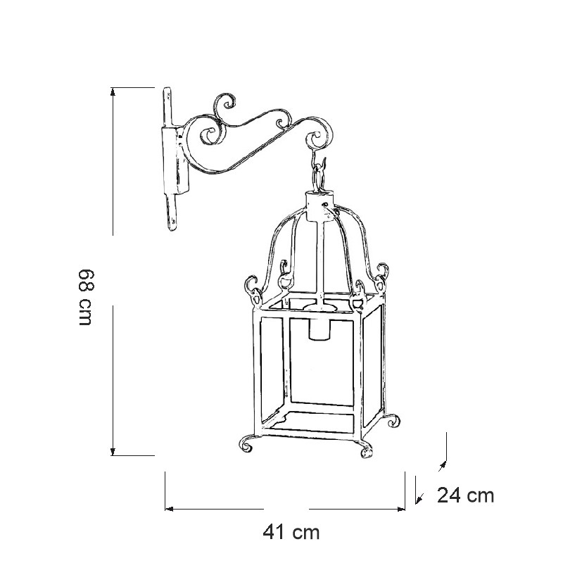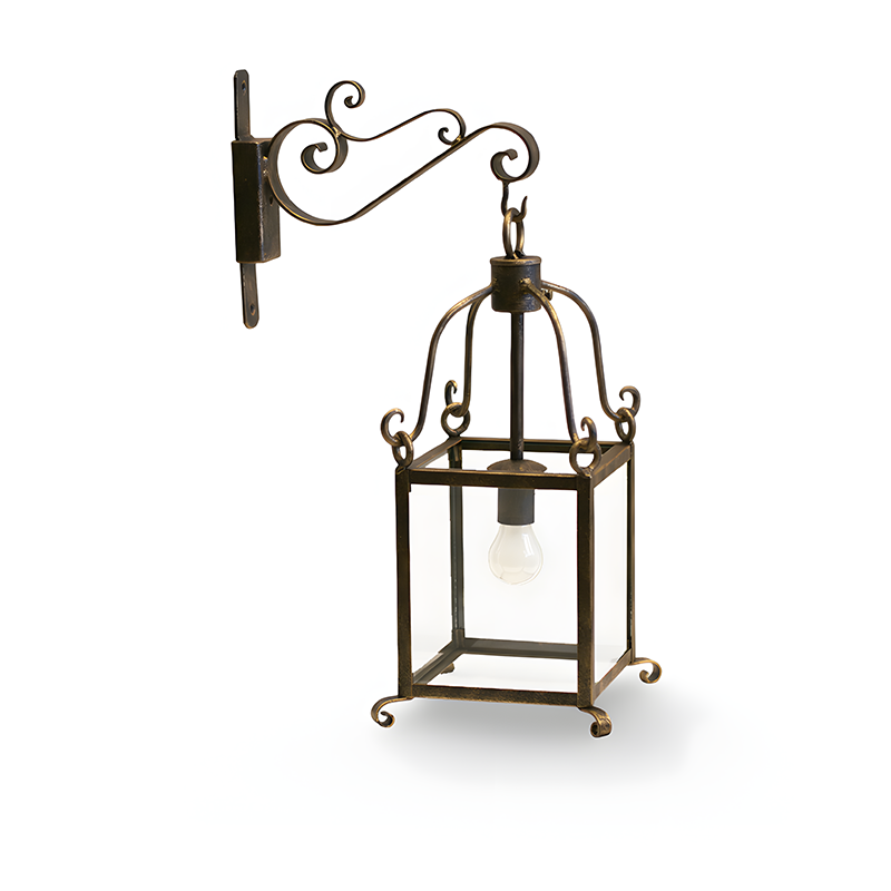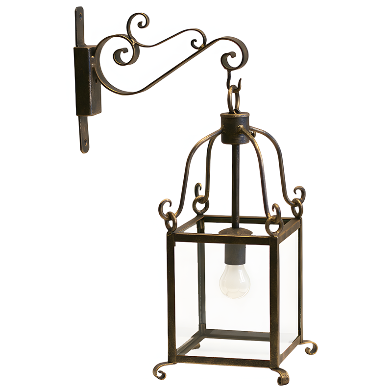 El Aplique de Pared 5024-136 es una pieza artesanal fabricada en hierro forjado a mano y combinado con cristal transparente, que aporta un encanto clásico y rústico a cualquier fachada o pared. Su diseño con detalles curvos y un farol colgante de líneas rectas equilibra tradición y elegancia, convirtiéndolo en un punto de luz que además decora.