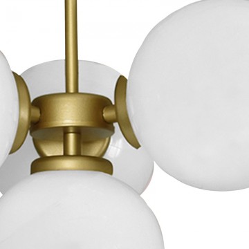 El Colgante Bola en color dorado y acompañado del blanco de las bolas compaginan un estilo con diseño moderno en la combinación de los dos colores. La iluminación es perfecta para cualquier tipo de espacio donde la iluminación juega un papel importante ya que dependerá del tipo de bombilla E27 se instale, aconsejando las bombillas LED donde podemos escoger una luz calidad, neutra o fría según el ambiente que se desea crear, la bombilla no van incluidas.