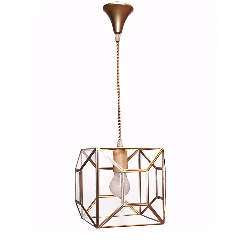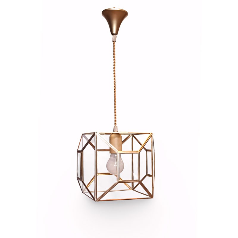 Lámpara Colgante Artesanal 7455 – Geometría Cúbica Dorada