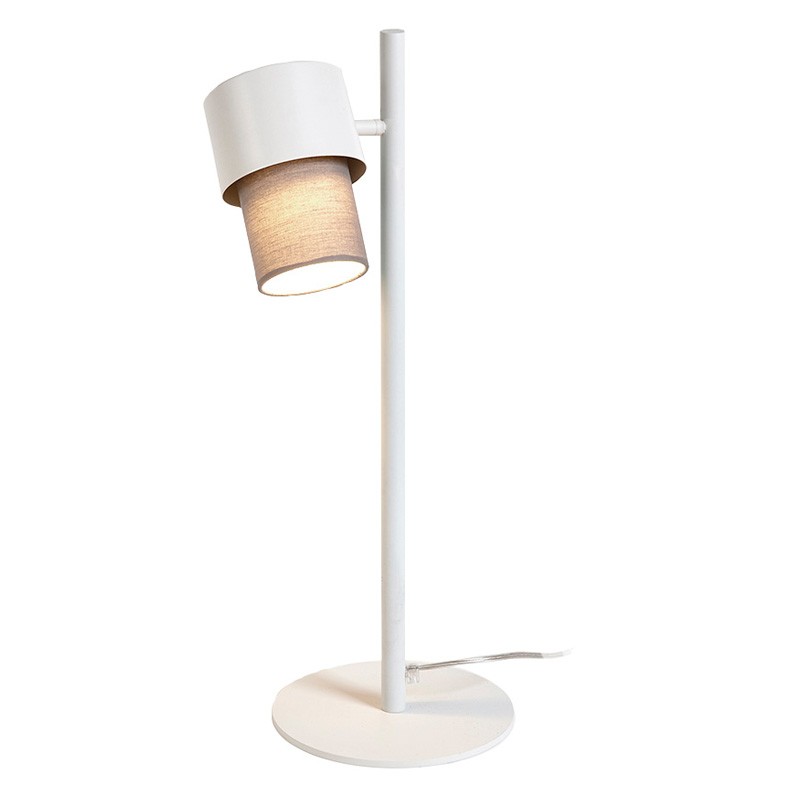 El sobremesa Kan en color blanco con una pantalla textil cotonet, su estilo moderno y agradable la convierten en una colección muy versátil y que ofreciendo soluciones para espacios y ambientes muy diversos.