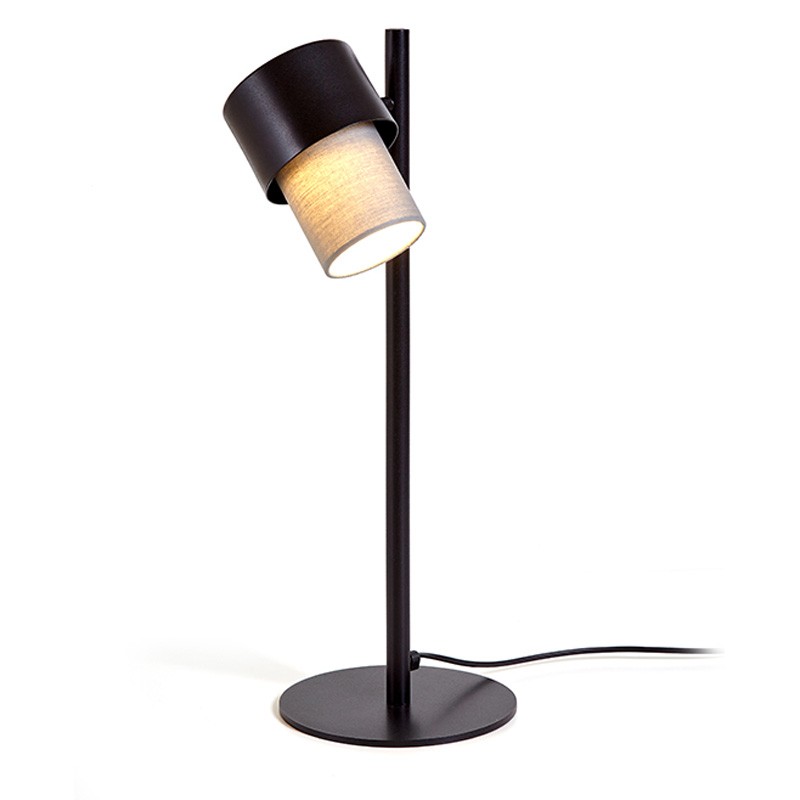 El sobremesa Kan en color negro con una pantalla textil cotonet, su estilo moderno y agradable la convierten en una colección muy versátil y que ofreciendo soluciones para espacios y ambientes muy diversos.