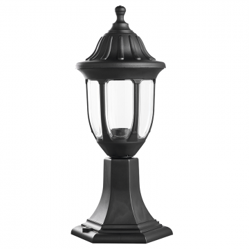 Sobremuro de exterior ANG negro de la serie ANGÉLICA. Fabricado en policarbonato, estilo clásico y protección IP44 contra humedad. Funciona con bombilla E27 (no incluida).